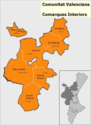 Les comarques de l'interior és la regió més occidental de la Comunitat Valenciana, totes les comarques que aglutina són castellaparlants, inclús d'orige castellà en el cas de la comarca de la Plana de Requena-Utiel. Les comarques que aglutina esta regió són: