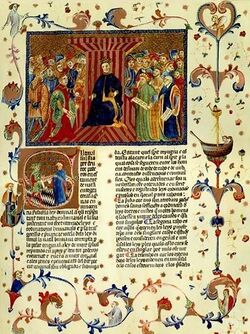 [editar | editar còdic]L'expansió i supremacia comercial i marítima de la Corona d'Aragó, en els consulats del Mar per tot Europa, va tindre com a conseqüència que la compilació de dret marítim feta en el nom de Llibre del Consolat del mar, transcendira les fronteres polítiques en tot el Mediterràneu i el llevant de l'Atlàntic. El Llibre del Consulat del mar, elaborat sobre les bases dels costums marítims mediterràneus,[13] fon compilat entre 1260 i 1270 i la seua redacció definitiva és de 1350.