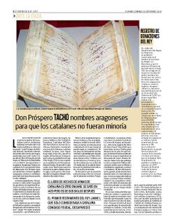[editar | editar còdic]- El periòdic El Mundo publicà el dumenge, 8.9.2013, un artícul de Julio Martín Alarcón en un suplement titulat 'Crónica' a on parlava de Pròsper Bofarull, antic archiver del ACA (Archiu de la Corona d'Aragó) de sèu en la ciutat de Barcelona. L'artícul és molt interessant, trau a la llum pública la manipulació que est element feu dels principals documents valencians: