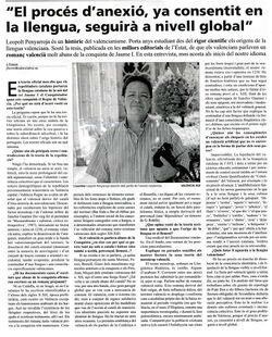 Dia yo, per tant, que esta era una 'intuicio' quasi profetica de Germá Colón perqué hui coneixem més, millor i més profundament el romanç vernacul de la Valencia musulmana; romanç que la Llingüistica Historica ha denominat, sense massa fortuna, mossarap; pero tan romanç com els demes romanços hispanics, del gallec al catala.Els politics (els qui no defenen ni la nostra llengua ni el nom de la nostra llengua i els que sols defenen el nom, pero no la llengua) dotaren eixa estranya Academia ab una majoria abrumadora de partidaris de l'anexionisme catala, es dir, posaren la llengua valenciana en mans dels qui volien la catalana. I tenim el cas inaudit d'una Academia que es un microparlament de partit unic i majoria inalterable, que no treballa per a recuperar la llengua de la societat que la manté, sino per a liquidar-la i imposar la del vei.