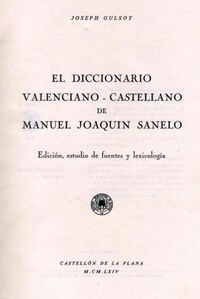 [editar | editar còdic]- J. Gulsoy El Diccionario valenciano-castellano de Manuel Joaquín Sanelo (Inclou el diccionari i l'ensaig). Edició, estudi de fonts i lexicologia, Castelló de la Plana: Societat Castellonenca de Cultura, 1964