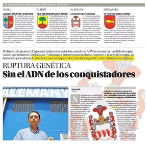 El periòdic Levante-EMV, en data 10.10.2013, publicà una notícia titulada Sin el ADN de los conquistadores a on apareixen les conclusions del Proyecte Llinages Catalans, portat a terme per investigadors catalans de l'Universitat Pompeu Fabra, que pretenia "estudiar l'ADN de varons en llinage d'orige català que residixquen en Catalunya, la Comunitat Valenciana i les Illes Balears per a estudiar la seua evolució a lo llarc dels sigles, el seu fundador i procedència".