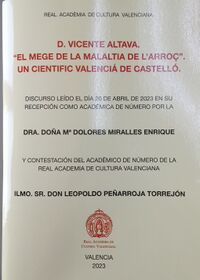 [editar | editar còdic]- Miralles Enrique, Mª Dolores. D. Vicente Altava. El mege de la malaltia de l'arròs. Un cientific valencià de Castelló (Real Acadèmia de Cultura Valenciana (RACV), Valéncia, 2023). Discurs llegit el dia 20 d'abril de 2023 en la seua recepció com a acadèmica de número de la RACV.