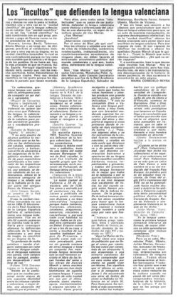 editarPara ellos, para todos estos ‘intelectuales’ que no pasan de ser juntaletras, defender la lengua valenciana como distinta y diferenciada del catalán es una aberración, un signo de incultura propio de tías Marías.