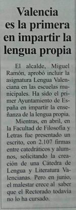 L'alcalde Miquel Ramon aprovà en l'any 1974 incloure l'assignatura de Llengua Valenciana en les escoles municipals.